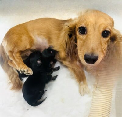 急遽、帝王切開になりましたが無事出産できました。 3頭の女の子が生まれたよ〜